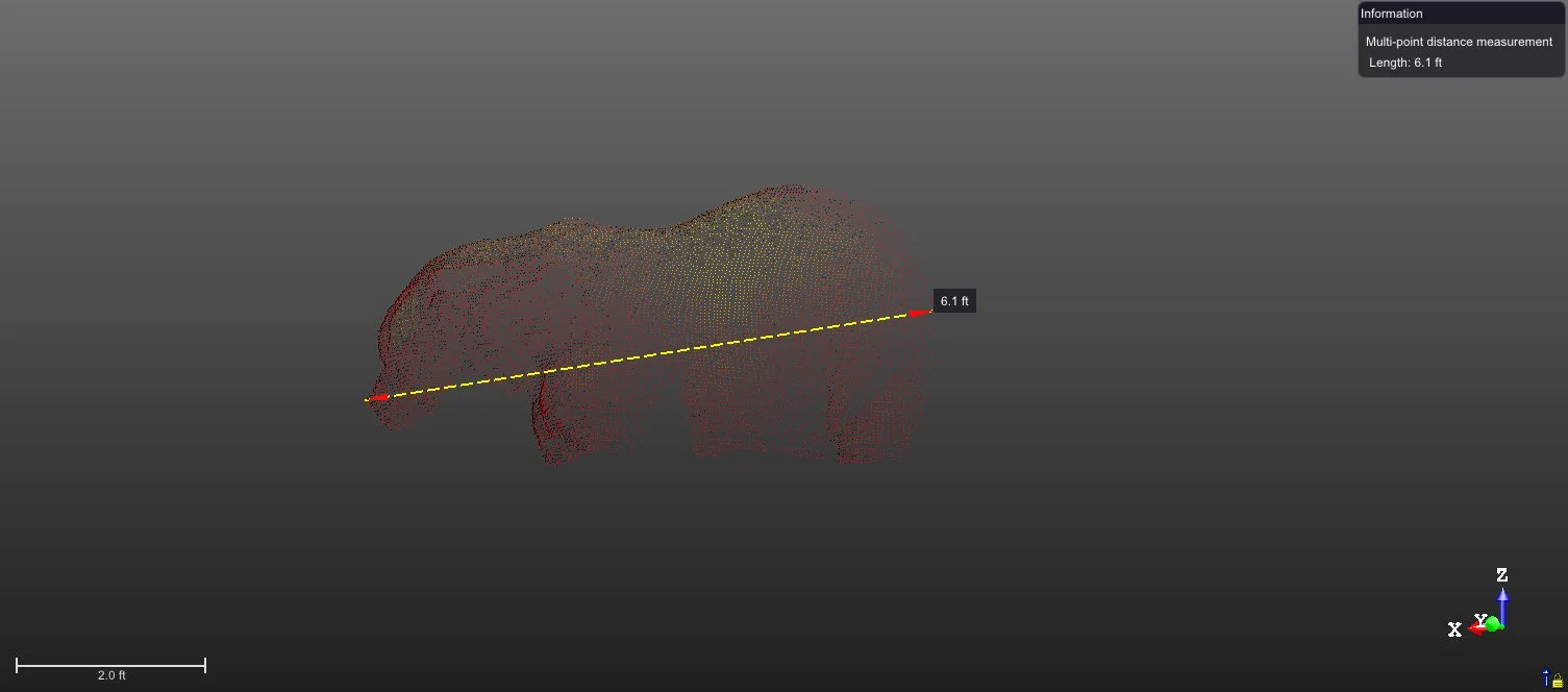 To figure out the dimensions of the Katmai bears, we used National Park GIS specialist Joel Cusick’s scans of the bears, taken while they stood still at Brooks Falls waiting for salmon to swim by.